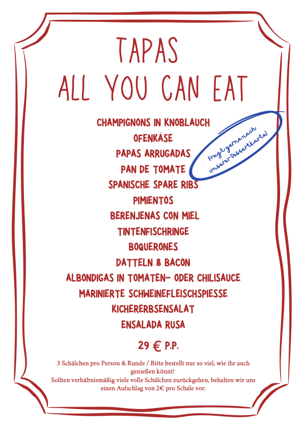 Bis auf den letzten Platz waren wir belegt und es war herrlich mit anzusehen, wie sich unsere Gäste quer durch die Karte probiert haben. Das lieben wir an Tapas!